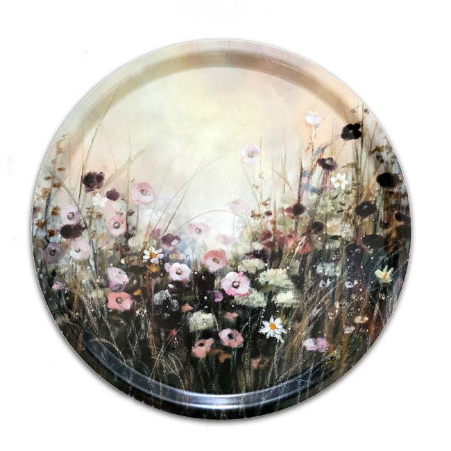 Svensktillverkad bricka i björkfaner. Motiv från originalmålningen "Nature calling"