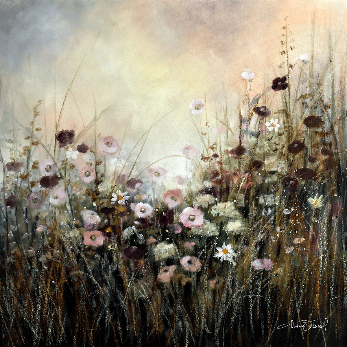 Canvasen är handspänd över kilramar i massivt trä och har sedan fått en skyddande fernissa på duken.