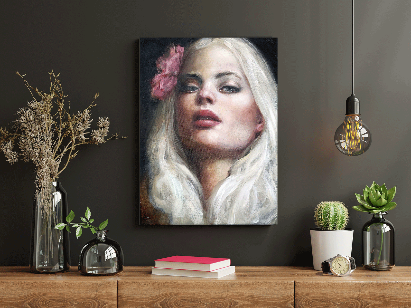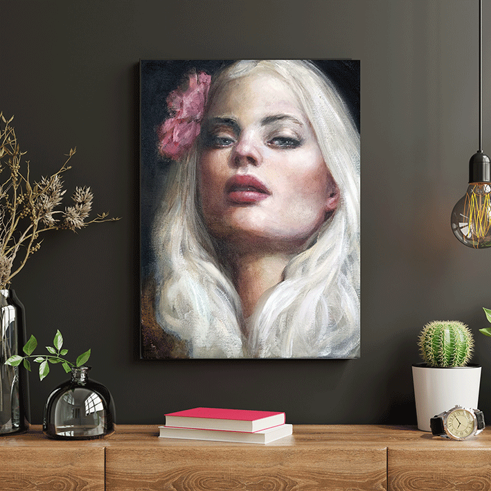 Storlek 30x40cm. Färdig att hängas på vägg. Kanterna är målade övergående i en mörkgrå färg. Färdig att hängas på vägg.